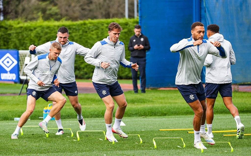 格拉斯哥流浪者赛前训练。